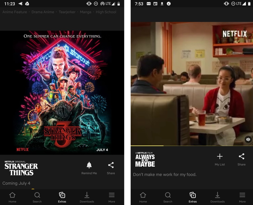 Netflix teste un nouveau design sur son application mobile : un nouvel onglet appelé « Extras » similaire aux Stories Instagram.